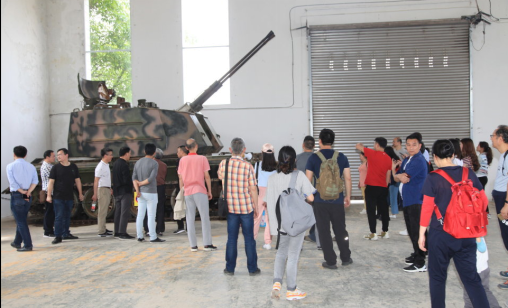 16日下午2点,全体人员在位于铁山坪的重庆国防知识教育中心集合。在讲解员的带领下,大家首先参观了该中心的兵器陈列室。这里是国营望江机械厂旧址,该厂在上世纪曾经是国内重要的军工企业,产品以火炮为主。展厅里的各式自行火炮、高射炮和舰载炮等实物让各位教职工大开眼界。