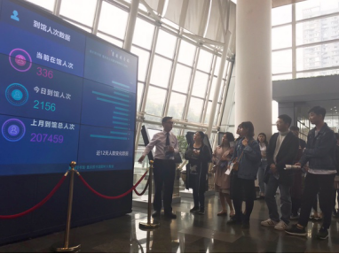 走进重图,大家不禁降低了音量,减缓了步伐,在图书馆讲解老师的带领下,大家首先来到了位于2楼的大厅,参观了重图先进的大数据显示屏和VR全景漫游体验区。