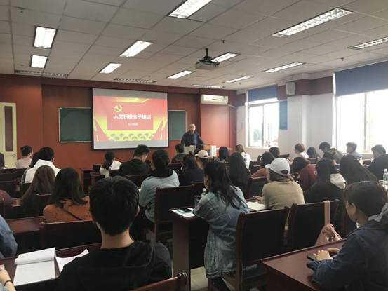 为加强学生入党积极分子培养教育工作,2018年3月16日下午,学院在503教室组织新学期学生入党积极分子专题理论培训,来自学院不同年级50余名学生入党积极分子参加,会议由院学办主任袁惠江老师和院团委书记赵华老师分别主讲,对学生普及党的基础知识,解答学生提出的有关问题,通过解疑释惑,帮助骨干端正入党动机,了解入党流程,明确努力方向,培训达到了提高思想认识、坚定理想信念的目的,受到学生的欢迎和肯定。