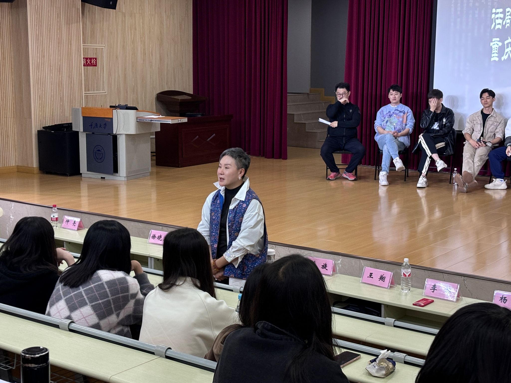 在交流环节中,山东省话剧院董旋院长特别向同学们分享了自己对表演的理解:“演员就是在别人的故事里,流着自己的眼泪。”激发了同学们对表演艺术更深层次的思考和探索。