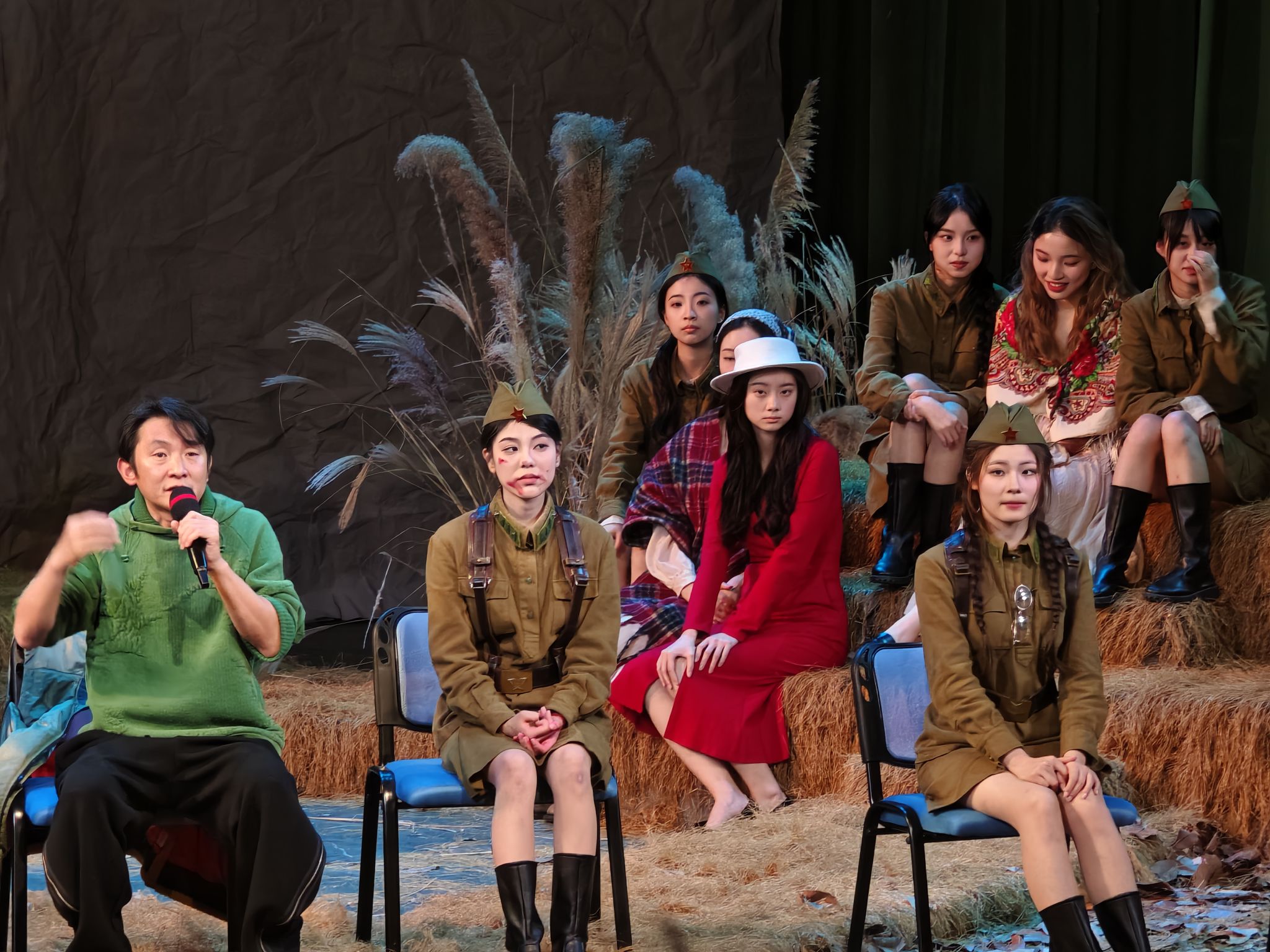 大学生戏剧演出季,不仅是一场戏剧艺术的盛宴,更是校园文化交流与情感共鸣的桥梁与纽带。在《这里的黎明静悄悄》首演结束后,剧组还举办了别开生面的“演后谈”,导演赵虎携演员团队与观众进行了深入的交流与互动。这一环节,不仅激发了演员与观众对戏剧艺术的无限热爱与深刻思考,更为演员们提供了宝贵的观众反馈,助力他们在未来的艺术创作中精益求精,更上一层楼。