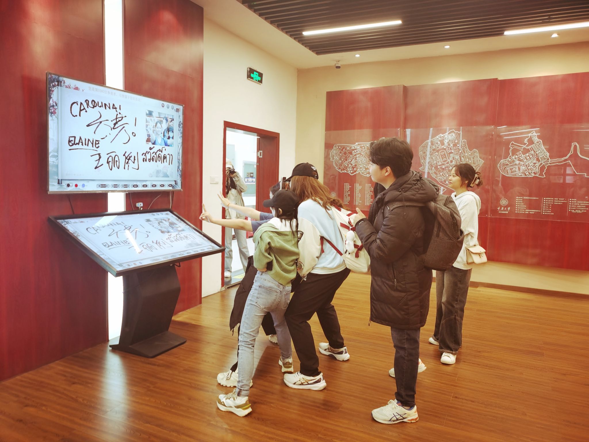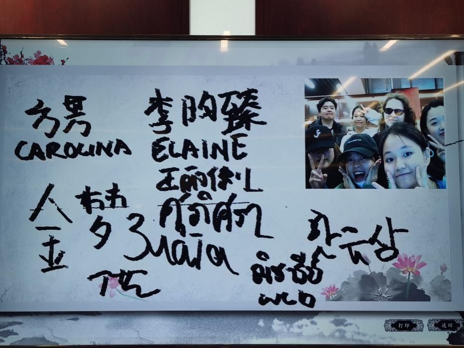 怀先贤思来者,初心不忘;迎未来领风尚,光景日新。参观活动结束后,同学们意犹未尽,在显示屏上签名并合影留念。