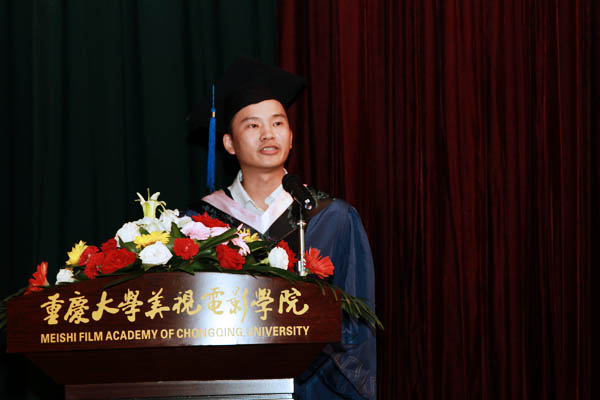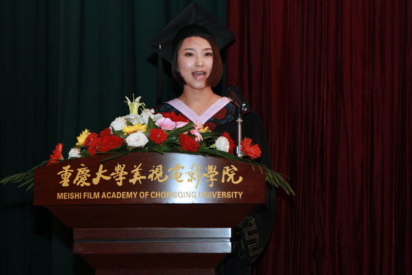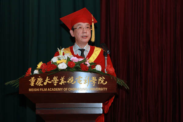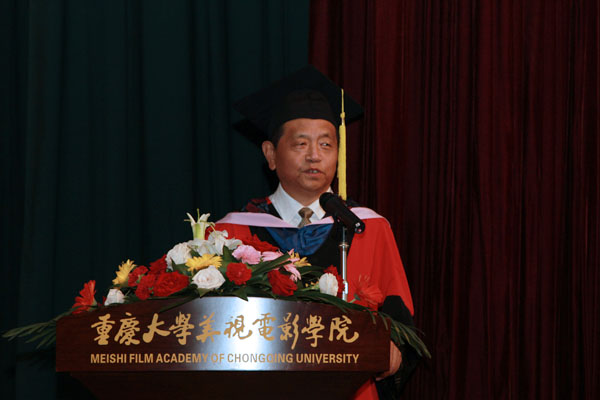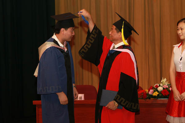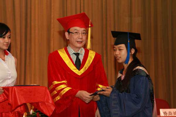 杨丹副校长和彭吉象副院长为毕业生代表颁发学位证书