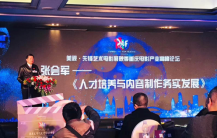 论坛共有7人进行了大会主题发言。中国著名电影学者、北京电影学院原校长、美视•先锋艺术电影展映季组委会主席张会军先生,做了“人才培养与内容制作务实发展”的开篇主题发言,从电影学院产学研相结合、电影创作基地建设以及鼓励学生自主创新三个方面,论述了如何面向中国电影产业发展培养有实践创新能力的电影人才。