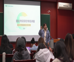 活动开始,赵华介绍了举办本次交流会的重要意义。她指出考研出国是同学们开拓视野,增长见识,促进自己更好发展的重要方式。希望同学们能尽早结合自身专业,明确目标,利用好学校提供的平台资源,对出国留学有更深入的认识,做出适合自己发展的生涯规划。