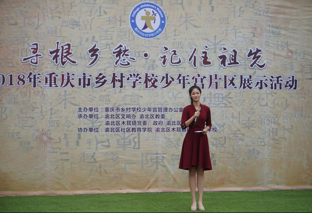 2018年11月13日下午,山清水秀的渝北石鞋小学,一场别开生面的“寻根乡愁·记住祖先”展示活动在这里举行。 下午两点,石鞋小学的几百名师生,迎来了重庆市乡村小学少年宫公益大使牛琪 。现场,19岁的牛琪一直在忙碌着,她除了主持在石鞋小学乡村学校少年宫举办的活动,还在开幕式结束后带着小学生讲解中华百家姓以及家风家训故事。
