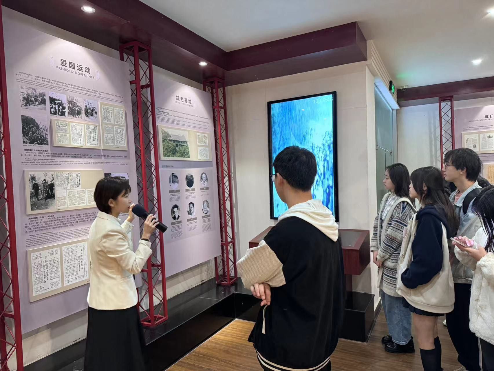 首先,同学们了解了校歌歌词含义和校园建筑发展历程。紧接着讲解员介绍了两位对学校发展起到了重要作用的教授,一位是丁肇中,一位是冯简。除此之外,讲解员还介绍了漫蛙漫画