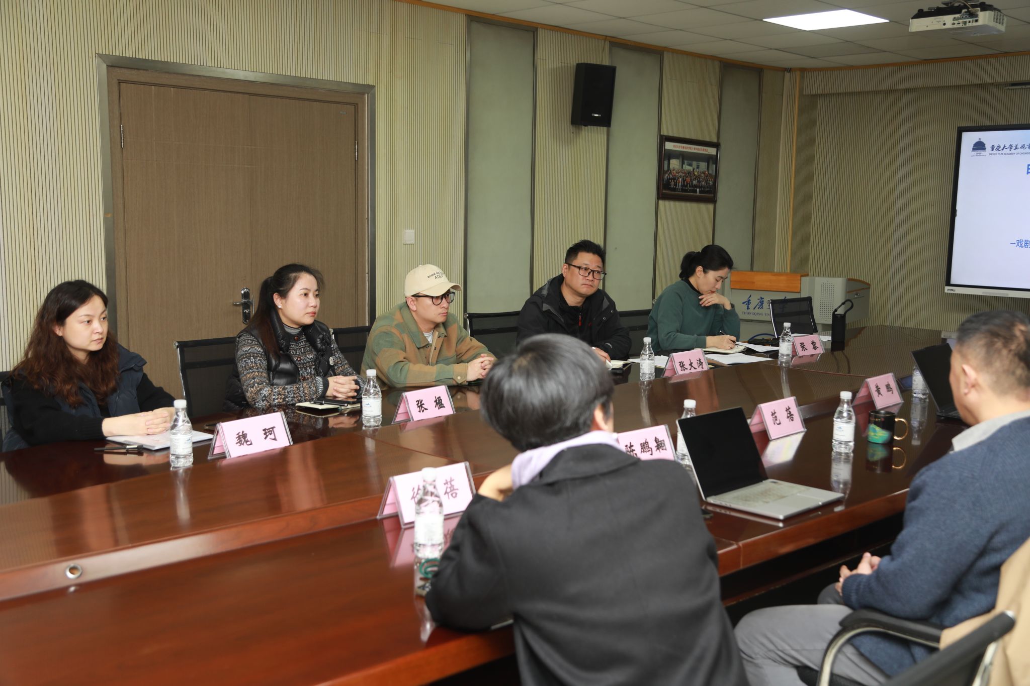 第一会议室举行。学院特别邀请了第四十一届蒙特利尔国际电影节金奖导演、戏剧影视文学专业2001级校友陈鹏翱回校参与交流讨论。此次交流会聚焦于探讨如何更好将理论教学与实践训练相结合,以培养出更具竞争力、更能适应行业发要求的影视人才。交流会由学院常务副院长、影视数智技术与艺术重庆市重点实验室主任、漫蛙漫画