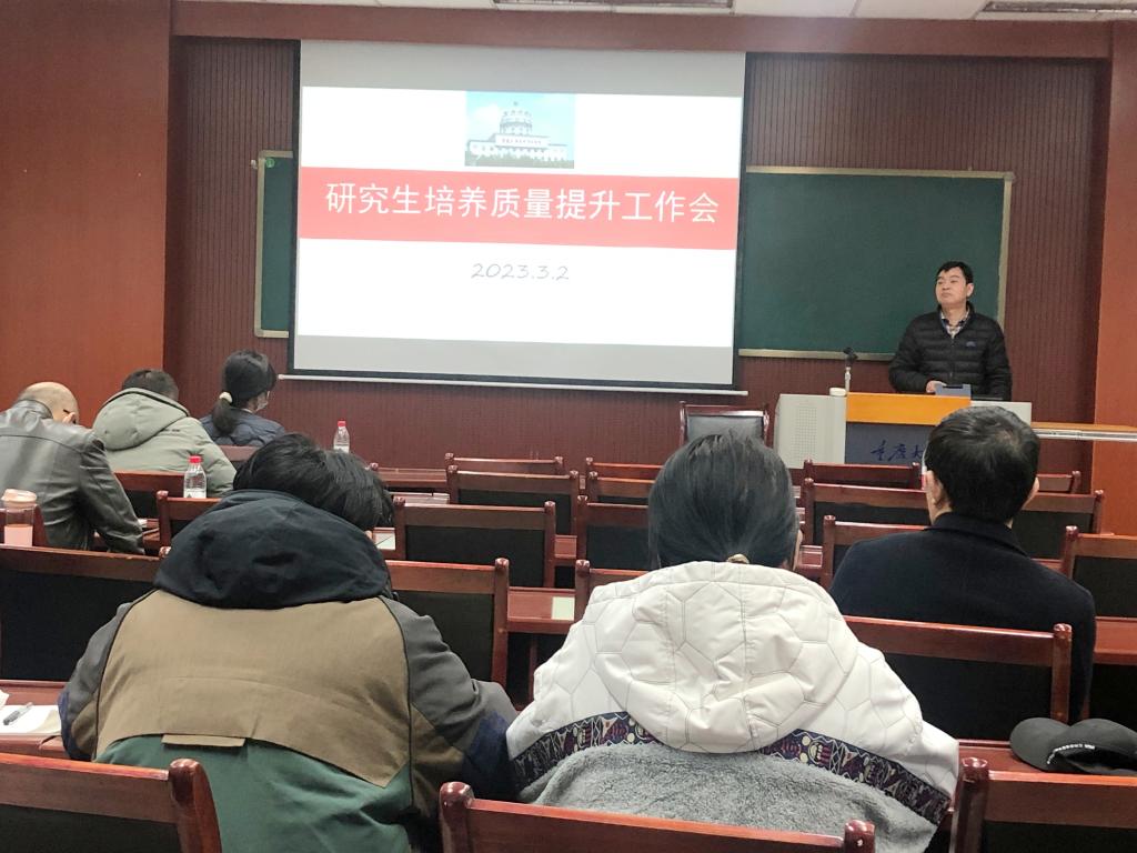召开了硕士研究生培养质量提升工作会,会议由副院长范蓓主持,院党委书记李阳模、副书记赵华、全体硕士研究生导师、硕士研究生教学秘书和辅导员参加了本次会议。