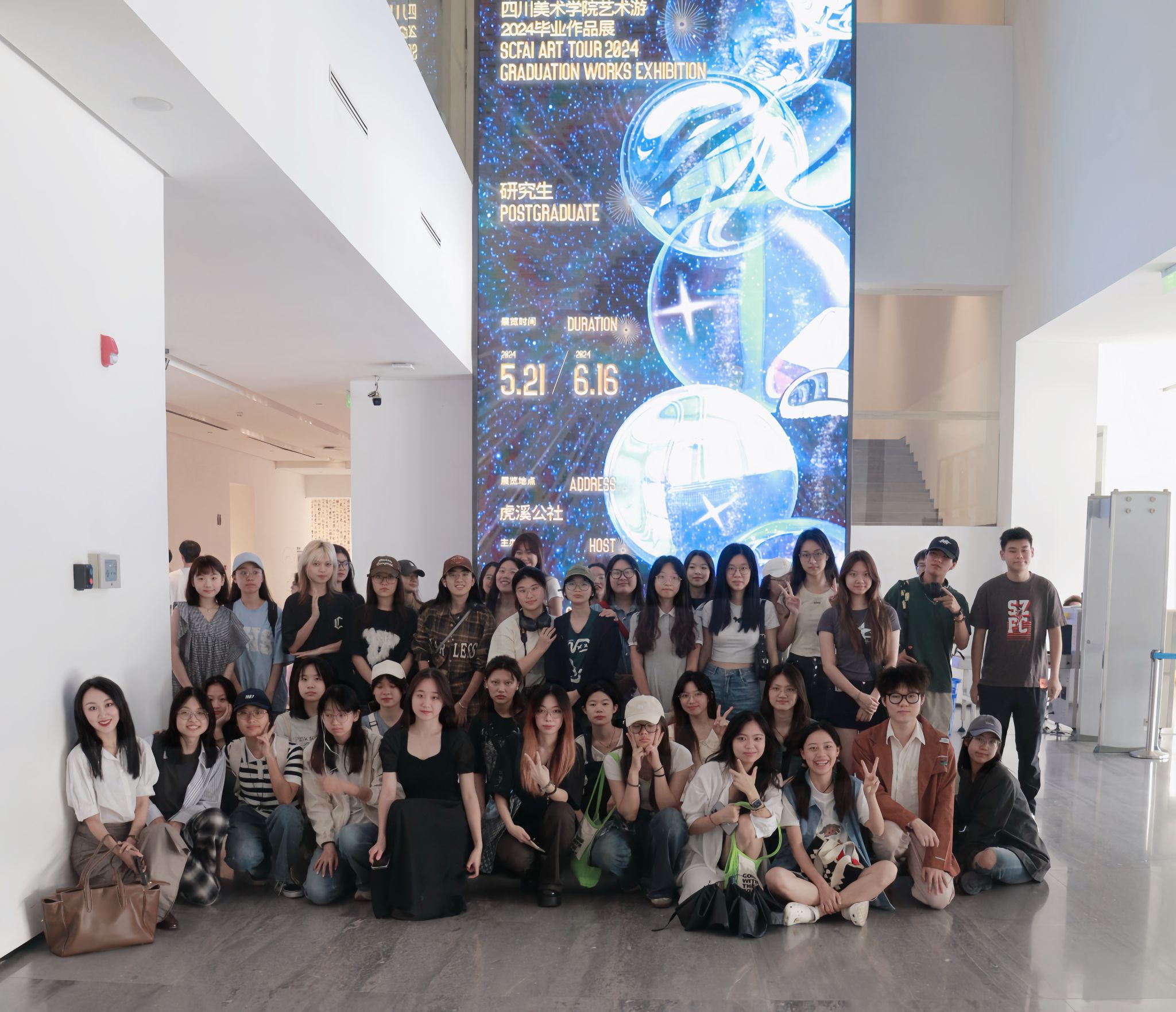 2022级文学系广播电视编导专业的学生在梁璐璐老师的带领下,来到四川美术学院美术馆(罗中立美术馆)参观“开放的六月——四川美术学院2024毕业作品展”。此次活动不仅仅是本学期《短片剧本创作》的一次课程实践,更是对艺术的感知与创意的探索。