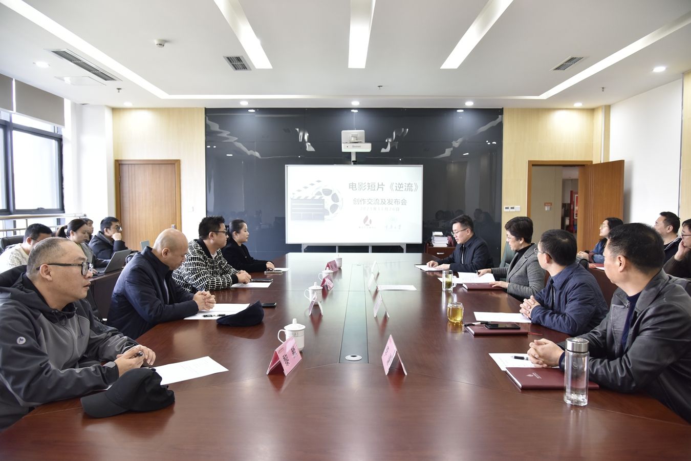 2025-12-10 2025年11月26日下午3时,重庆市文联2025年度主题文艺创作扶持项目、重庆市文联“渝艺银光”短片扶持计划资助项目,我院教改电影短片《逆流》创作交流及发布会在重庆市血液中心举行。重庆市血液中心主任朱小兵、副主任谢成兵、田耘博等,我院副院长黄鹏、教务办负责人张大涛、影视系教师张楹、教务办实验员黎麟等作为创作团队代表出席活动,新华网、华龙网等媒体全程报道。《逆流》由重庆市血液中心和我院共同出品,作...