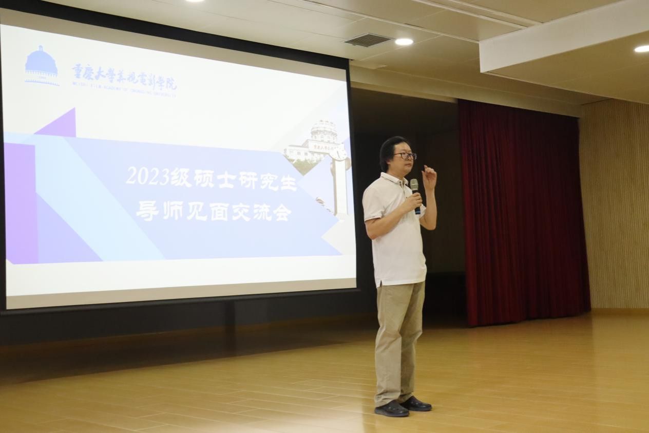 最后,范蓓对此次会议进行了总结,并寄语2023级研究生同学,希望同学们充分肯定自己的能力和毅力,坚信自己在学习和生活中会取得更大的进步和成就。不同专业的同学要相互学习、取长补短,以更好地完成研究生学业。在三年的学习中,同学们要用“孤注一掷”的精神来投入到专业学习中,不断追求卓越。同时,他也希望同学们能够把从本科阶段学到的各种专业知识和学习方法带入到研究生阶段的学习中,不断创新和进步,完成优质的研究成果和影视作品,不虚此行,取得更大的成就。