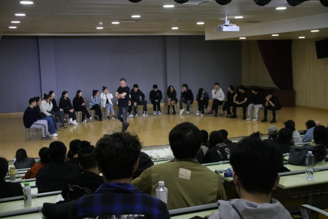 2024-05-112023年11月3日至11月5日,俄罗斯国立舞台艺术学院表演专家——阿列克谢·阿斯塔赫夫教授应邀在美视电影学院阶梯教室进行了为期三天的“康斯坦丁·斯坦尼斯拉夫斯基演员基础训练工作坊”。我院表演系主任王希、副主任刘静、学院教学督导组副组长杨华教授以及表演系师生全程参与了此次工作坊的学习交流。
